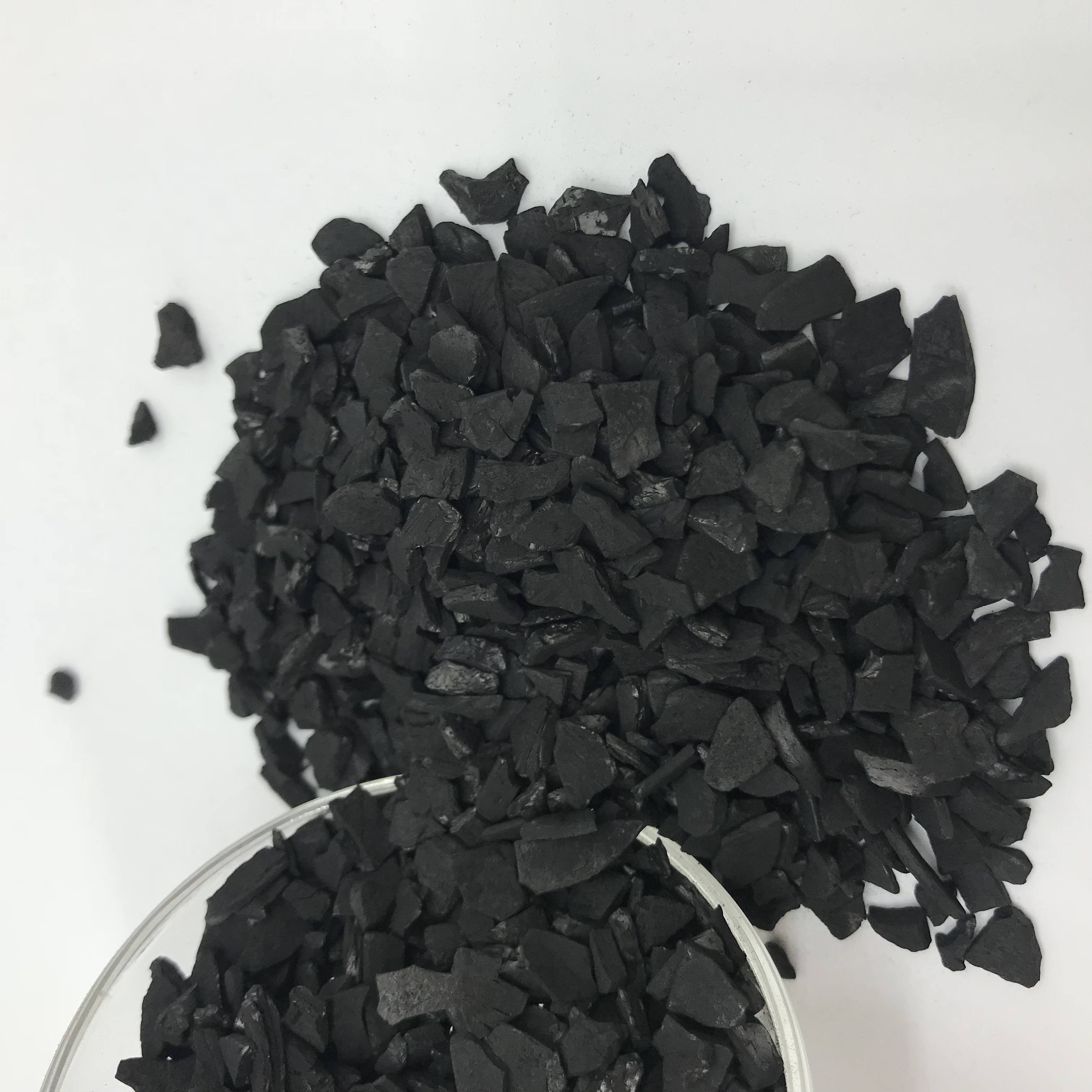 木質(zhì)粉狀活性炭有不定型顆粒狀和柱狀顆粒兩種,粒度在0.5~4mm之間。前者是通過適當(dāng)?shù)钠扑楹秃Y選得到的,后者則是將原料通過造粒機壓制成型的。粉狀活性炭產(chǎn)品的外形呈非常微細的粉末,絕大部分可通過200目篩網(wǎng),大部分可通過325目篩網(wǎng),粉的尺寸在1~150μm之間(平均約40μm);通常,炭粉越幼細,粉狀活性炭對雜質(zhì)的吸附速度越大。故常將活性炭產(chǎn)品進行高度的破碎和篩選,得到微細的粉末。粉狀炭的缺點是再生比較困難,通常不再生使用,故消耗量較大。粒狀活性炭通常都再生使用,消耗量較少。