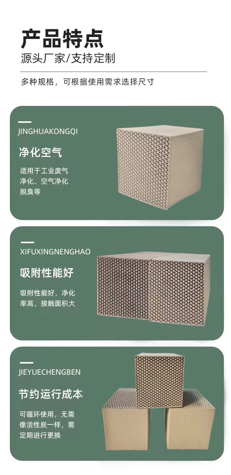 2、是替代蜂窩活性炭的材料、可高溫脫附、脫附徹底;使用壽命>3年